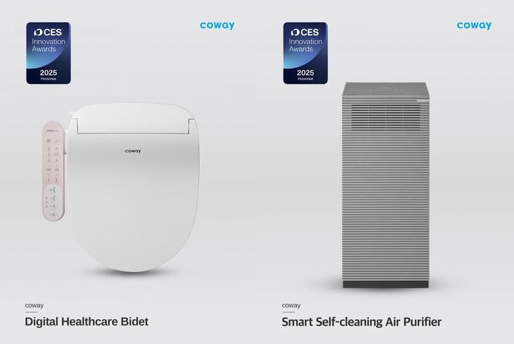 코웨이는 ▲디지털 헬스케어 비데 ▲자동 필터 클리닝 공기청정기 ▲개인 공간 맞춤형 공기청정기 등 총 3개 제품으로 CES 2025 혁신상을 수상했다. 비데의 사용자 모니터링, 공기청정기의 친환경성과 AI 기술력을 인정받은 것으로 보인다.