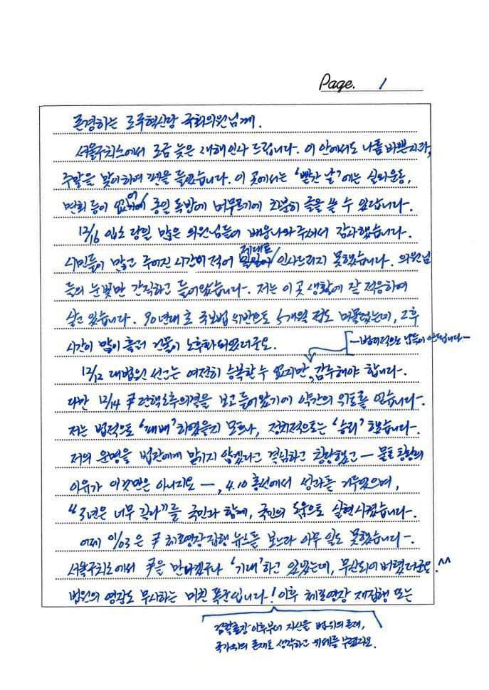 (MHN스포츠 이민지 인턴기자) 조국혁신당 조국 전 대표가 옥중 편지를 통해 "서울구치소에서 윤을 만나겠구나 기대하고 있었는데, 무산 돼버렸더라”라고 말했다.