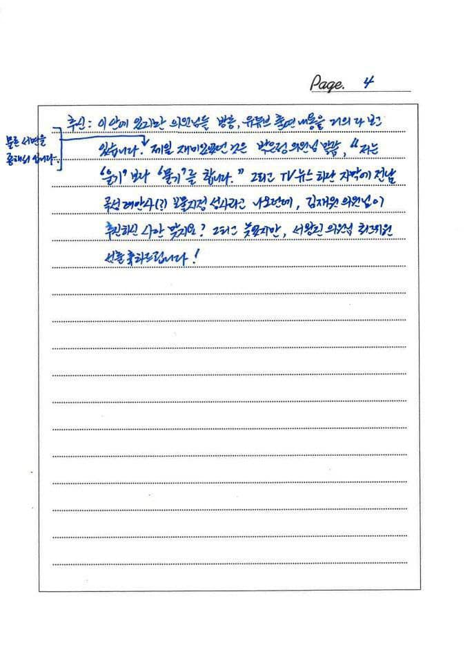 조 전 대표는 구치소에서 책 집필을 마무리하고 있으며 다음 달 안에 책이 출간된다고 소개했다. 지지자들이 보내준 영치금은 탄핵 정국 집회에 참석한 시민들에게 무료 음료를 나눠주는 데 쓰겠다고 밝혔다.