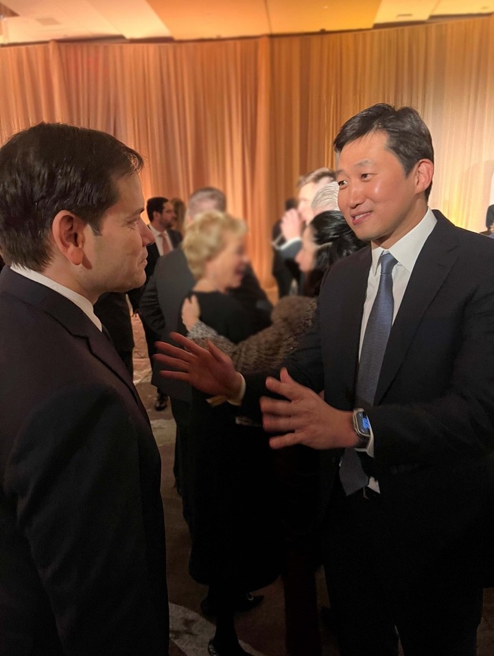 리셉션에서 김 의장은 트럼프 주니어와 마코 루비오 국무부 장관 지명자, 하워드 러트닉 상무부 장관 지명자, 스콧 베센트 재무부 장관 지명자 등과 대화를 나눴다.