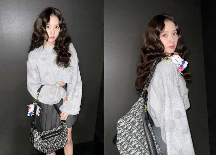 상의와 하의 모두 그레이 계열로 맞춰 무채색 코디를 완성했으며, 컬이 들어간 헤어와 키링으로 러블리함을 더해 청순하면서도 모던한 무드를 자아냈다. 특히 크롭 니트에 드러난 잘록한 허리가 시선을 사로 잡는다.