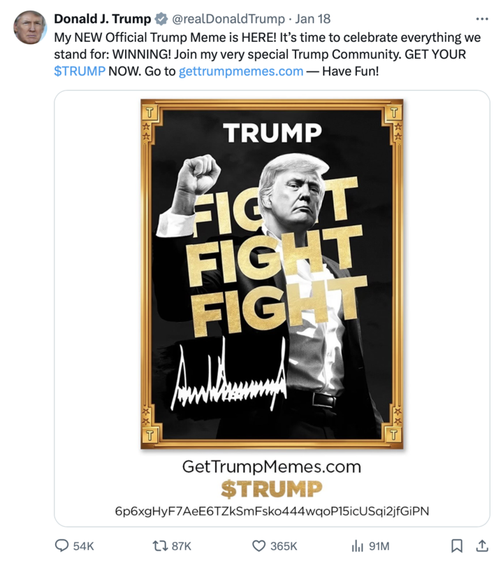 트럼프가 발행한 '트럼프 밈 코인', 하루 230% 폭등하며 시총 46조 기록