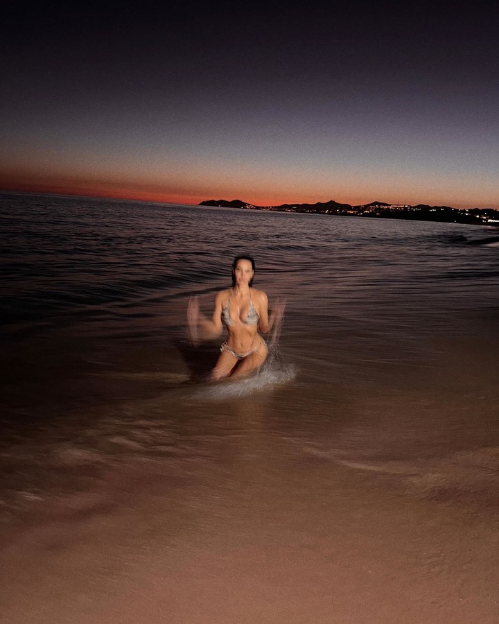 공개된 사진 속 킴 카다시안은 얼룩무늬 비키니를 입고 해가 저물어가는 해변가에서 사진을 촬영하고 있다.