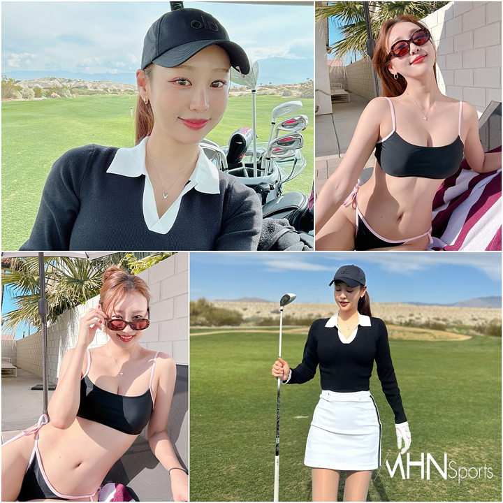 이 외에도 박지영은 유아틱한 로고가 그려진 한뼘 너비의 흰색 비키니를 입고 군살없는 몸매를 자랑했다. 늘어진 비키니 끈은 아슬아슬 묶여있었다.