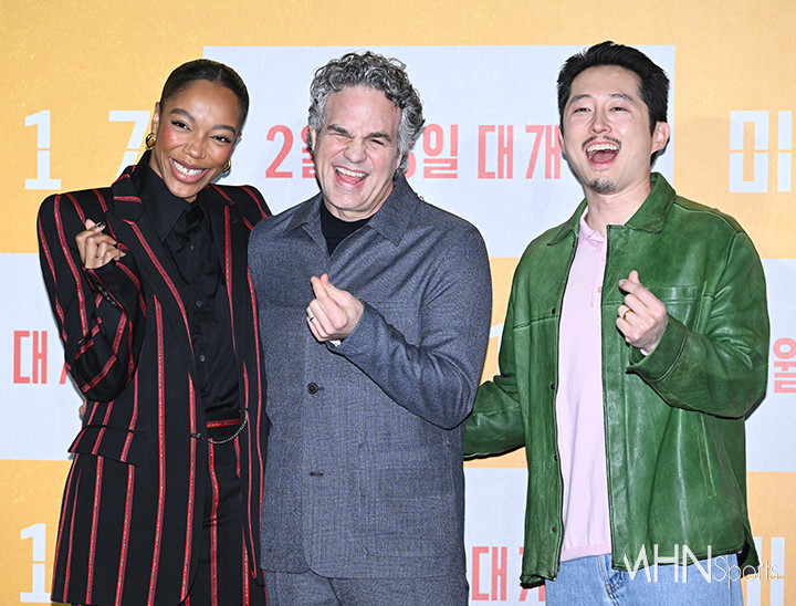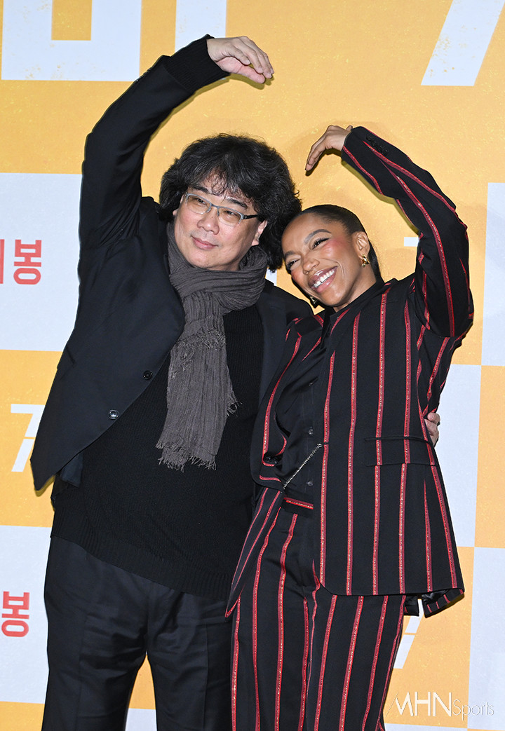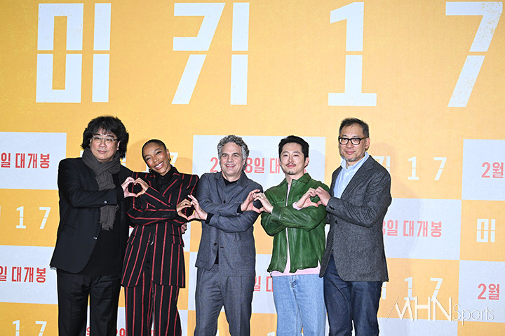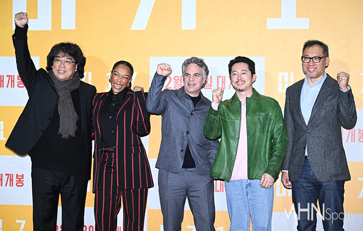 이날 기자간담회에는 봉준호 감독과 배우 나오미 애키, 스티븐 연, 마크 러팔로가 참석했다.