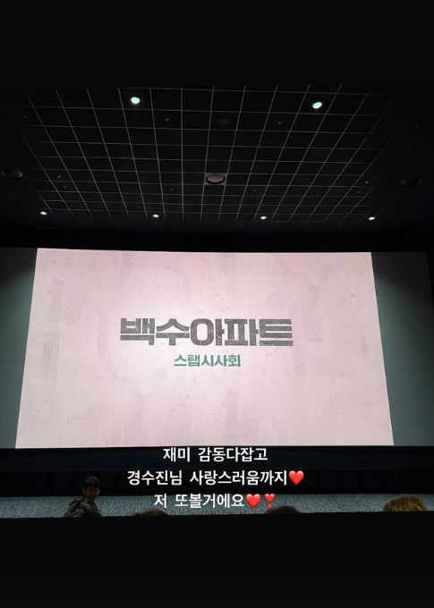 25일 이수지는 자신의 SNS에 영화 '백수아파트' 시사 인증샷을 올렸다.