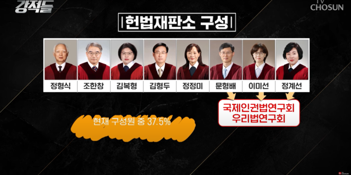 김규완 전 논설위원 역시 "판사 3천여 명 중 우리법연구회 출신은 100명 안팎으로 약 5%에 불과하지만, 헌법재판소 재판관 9명 중 3명이 우리법연구회 출신이고, 성향이 비슷한 인사까지 포함하면 그 비율이 37%에 이른다"며 국민들이 의심할 수밖에 없는 상황이라고 지적했다.