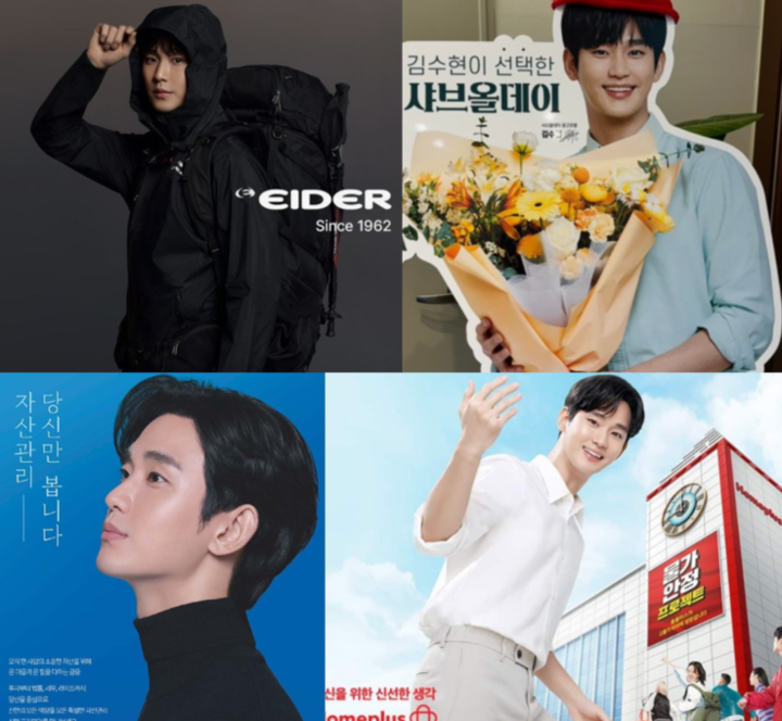 이외에도 현재 김수현은 신한은행, 쿠쿠, 프라다, 조 말론 등 10여 개가 넘는 곳의 모델로 활동 중이다.
