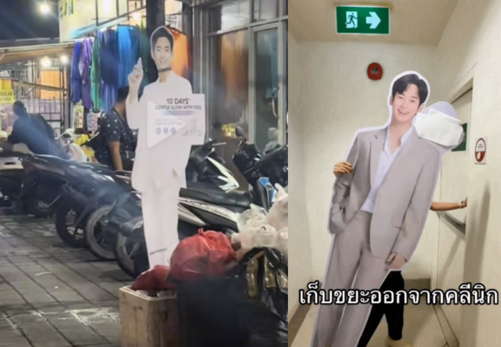 태국의 한 병원 관계자 여성은 병원에 설치된 김수현 입간판을 내다 버리며, '쓰레기를 수거하다'라는 자막을 달아 영상을 올렸으며, 다른 영상의 경우 입간판을 때리고 이를 인증하는 모습을 게재했다.