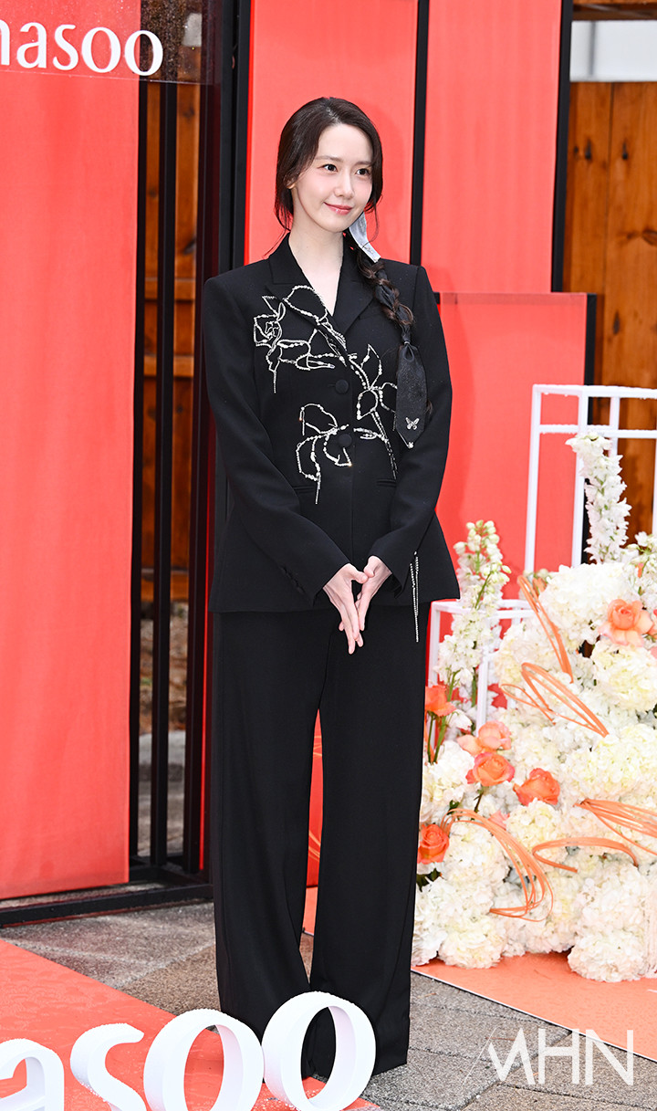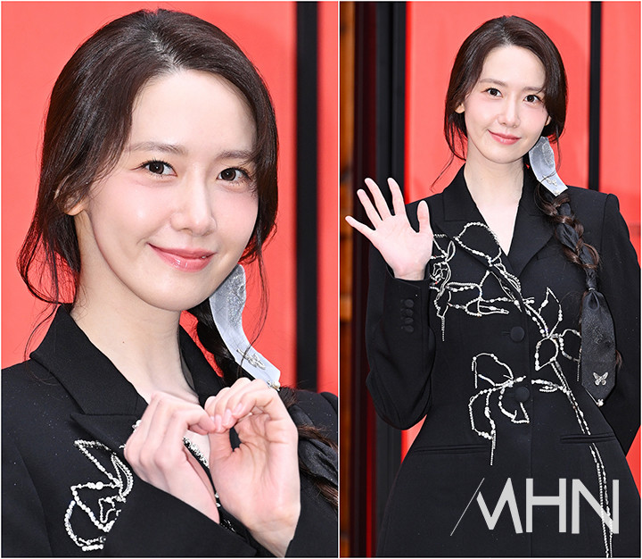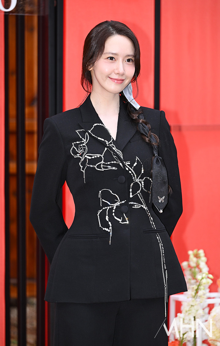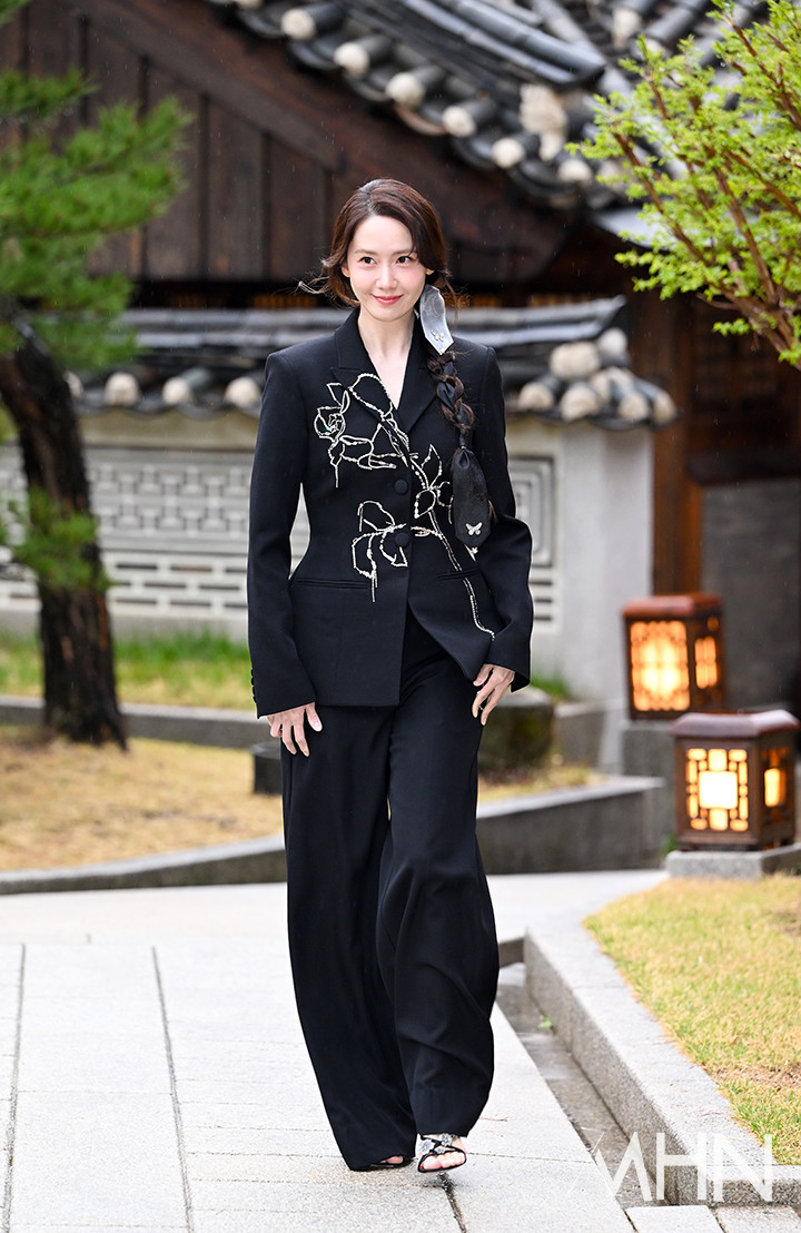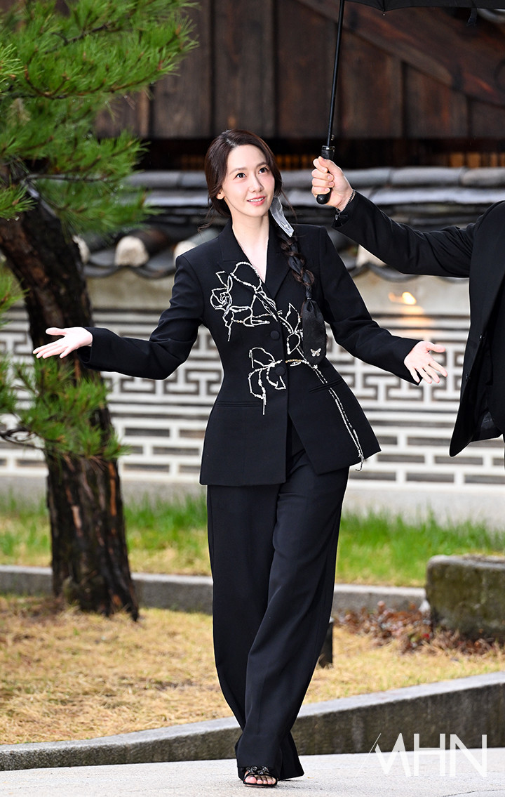 윤아의 선택을 올블랙이었다. 꽃무늬가 포인트 된 재킷에 와이드 핏의 팬츠를 매치한 윤아는 우아하고 세련된 매력을 선보였다. 여기에 댕기를 연상시키는 장식과 머리를 땋아 내린 윤아는 전통적인 한국의 아름다움을 현대적으로 해석한 듯한 느낌을 더하며 우아한 매력을 배가시켰다.