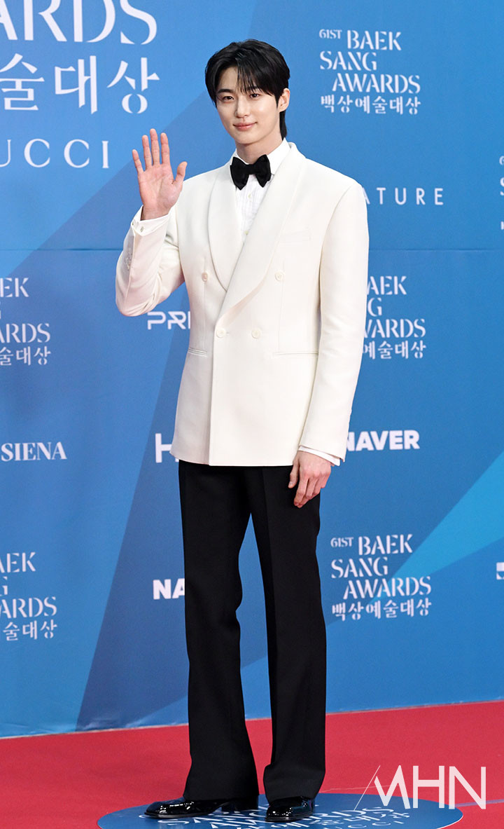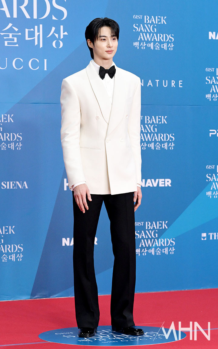 변우석은 깔끔하면서도 절제된 멋이 돋보이는 화이트 턱시도 패션으로 레드카펫에 등장했다. 현대적인 감각이 녹아든 클래식 스타일링으로, 과장 없는 디테일과 간결한 스타일링으로 ‘절제된 미’의 정수를 보여줬다.