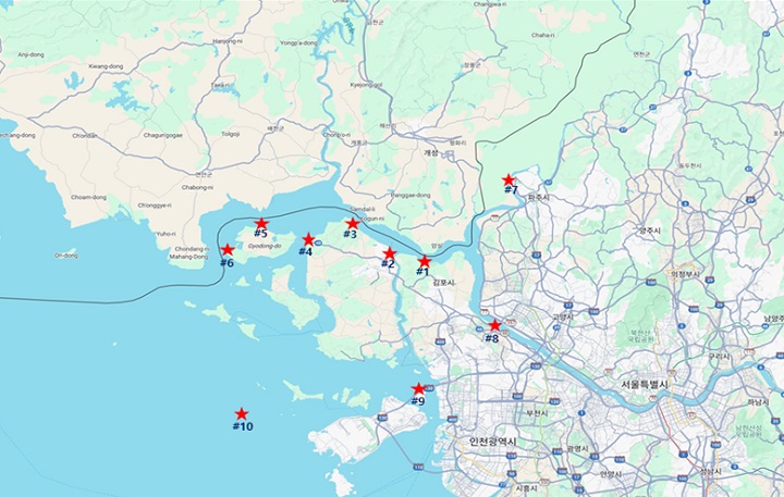 今回の特別調査では、北朝鮮側で汚染が懸念される芙蓉江河口に最も近い江華島および漢江河口を含め、合計10カ所にてウランやセシウムなどの放射性物質や重金属の汚染状態を重点的に確認する予定だ。
