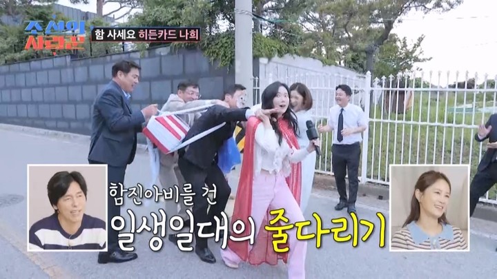 마지막으로 최종 보스인 ‘경성 대모’ 김지민의 엄마가 집 밖으로 나왔고, 함진아비 김대희를 혼내기 시작해 웃음을 폭발시켰다. 김대희는 어머니 찬스에 함값도 확인하지 않고 성큼 걸어 대문 근처까지 다가갔다.