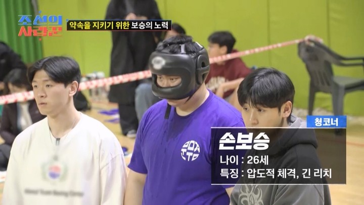 경기 직전 상대방을 확인한 손보승은 "덩치 있는 사람을 보면 안다. 관리된 덩치인지, 먹고 게을러서 덩치 큰 사람인지…상대 선수는 운동 많이 한 몸이었다"면서 긴장했다. 설상가상으로 객석에 앉은 이경실도 긴장하기 시작했다. 하지만 막상 1라운드가 시작되자 손보승은 수준급의 실력으로 상대방을 압도했다.