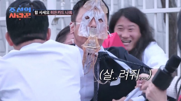 MC로서 VCR을 지켜본 김지민은 "오징어 가면 쓴 김대희 씨가 이거 찍고 대인기피증 걸렸다더라. 사람들이 오징어 냄새난다고 할까 봐…"라면서 근황을 전했다.