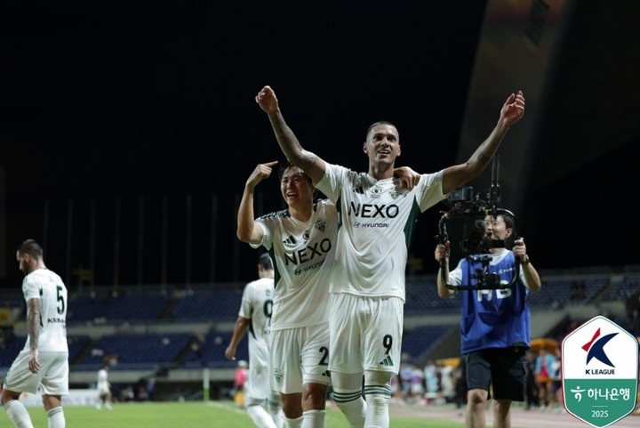 In the 24th round away fixture of the Hana Bank K League 1 2025 season, held at Gwangju World Cup Stadium on the 26th, Jeonbuk Hyundai edged out Gwangju FC 2-1 thanks to a decisive header from Thiago just before the final whistle.