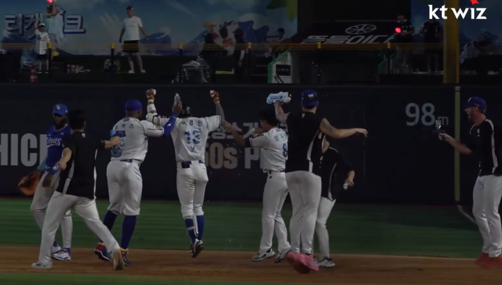 kt wiz于7月27日在京畿道水原的kt wiz公园,上演了扣人心弦的逆转好戏。在2025年新韩SOL银行KBO联赛主场迎战三星狮队的比赛中,他们在九局下半连得四分,最终以4比3完成逆转并以保送方式拿下再见分。