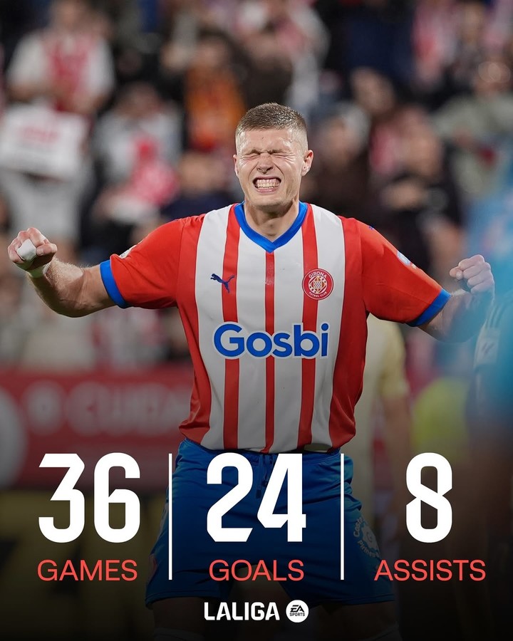 지로나에서의 첫 시즌부터 도우비크는 39경기에 출전해 24골 8도움을 기록해 라리가 득점왕을 차지하며 팀의 돌풍을 이끌었다.