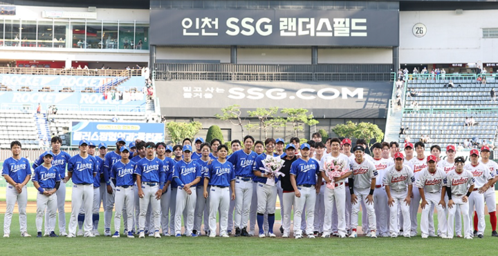 三星狮投手吴昇桓于8月7日在仁川SSG登陆者球场举行的对SSG登陆者的客场赛前,向球迷和球员们送上最后的问候,正式开启退役巡回之旅。当日赛前举办的退役纪念活动不但有SSG全体球员出席,也收获了仁川棒球迷的热烈掌声。