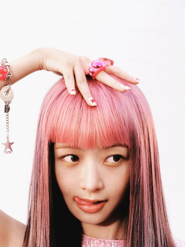 在公开的照片中,雷以独特地将粉色与黑色交织的长发及大胆剪裁的刘海展现出独特氛围。尤其是搭配闪亮亮片材质上衣的造型,突出了雷以自由且极具个性的魅力。