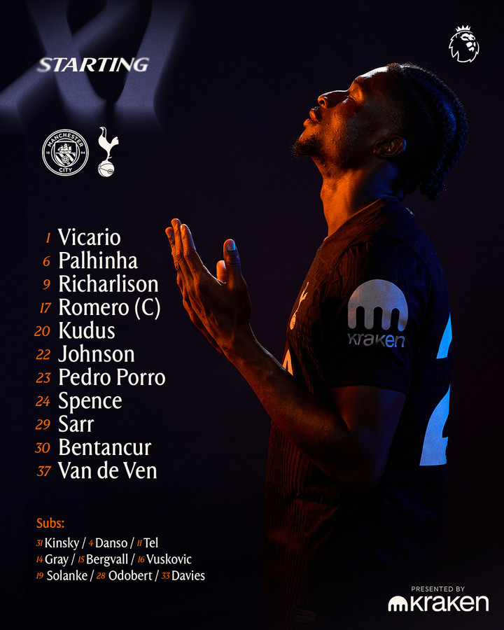 원정에 나선 토트넘은 히샬리송과 모하메드 쿠두스, 브레넌 존슨, 파페 사르, 주앙 팔리냐, 로드리고 벤탄쿠르, 페드로 포로, 크리스티안 로메로, 제드 스펜스, 미키 판 더 펜, 골키퍼 굴리엘모 비카리오가 선발 명단에 이름을 올렸다.