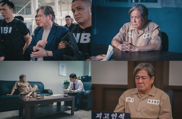 공개된 스틸에는 15년 만에 한국으로 송환된 차무식의 모습이 포착되며 충격을 예고했다. 특히 수감복 차림으로 법정에 앉아 고개를 떨구거나 검사 앞에 앉아 있는 차무식의 모습이 눈길을 끈다. ‘카지노 제왕’의 화려한 과거와 극명히 대비되며, 권력과 명예를 잃은 몰락의 아이콘으로 시청자들의 안타까움을 자아낼 예정이다.