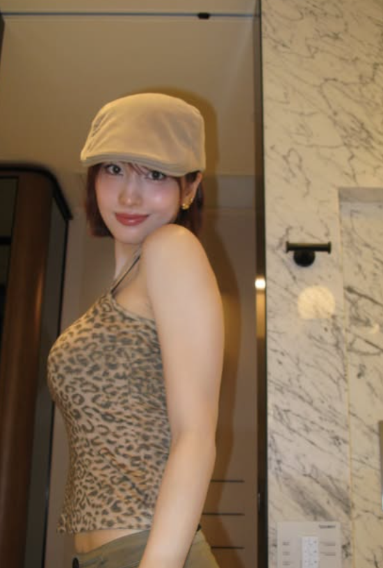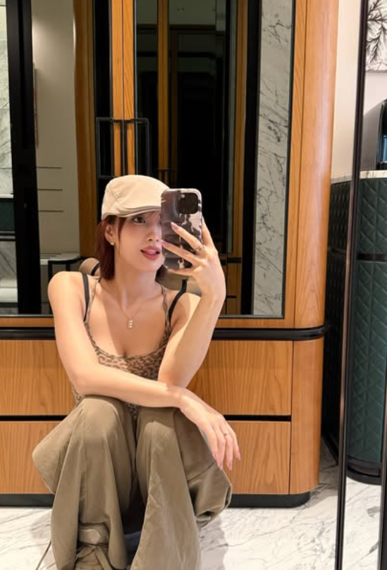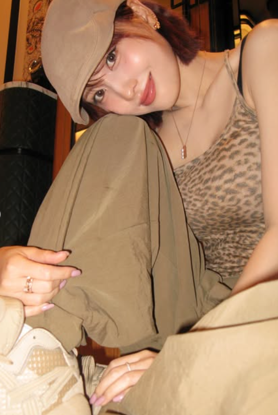 사진 속 모모는 딱 붙는 호피무늬 민소매에 베이지색 하의와 모자를 코디하며 멋을 냈다. 특히 볼륨감 넘치는 몸매가 시선을 사로잡았다.