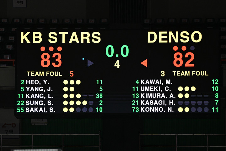 그러자 덴소는 21초를 남기고 다카다가 자유투 2개로 다시 앞섰다. 이후 마지막 총공세에 나선 KB는 약 3초를 남기고 강이슬이 던진 3점슛이 림을 통과하면서 극적인 83-82 역전승을 차지했다.