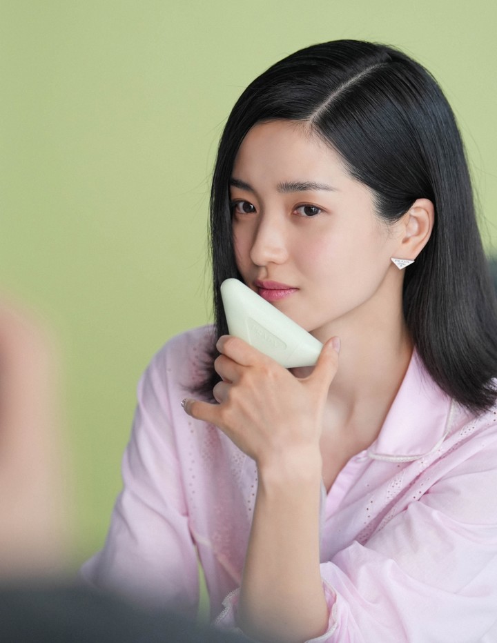 9일 공개된 사진에는 한 뷰티 브랜드의 앰버서더로 활약하고 있는 김태리의 광고 비하인드 컷이 담겼다.