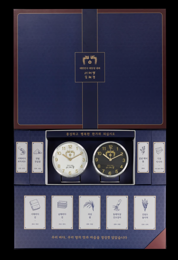 This year’s Chuseok package features a presidential watch—inscribed to symbolize that 'one hour for the President equals 52 million hours for the people'—alongside seafood sourced from all eight provinces, and rice cultivated in Uiseong, North Gyeongsang Province, which was devastated by wildfires last March. The inclusion of these regional and disaster-affected products reflects the nation’s vision for the future and offers solidarity to affected communities.