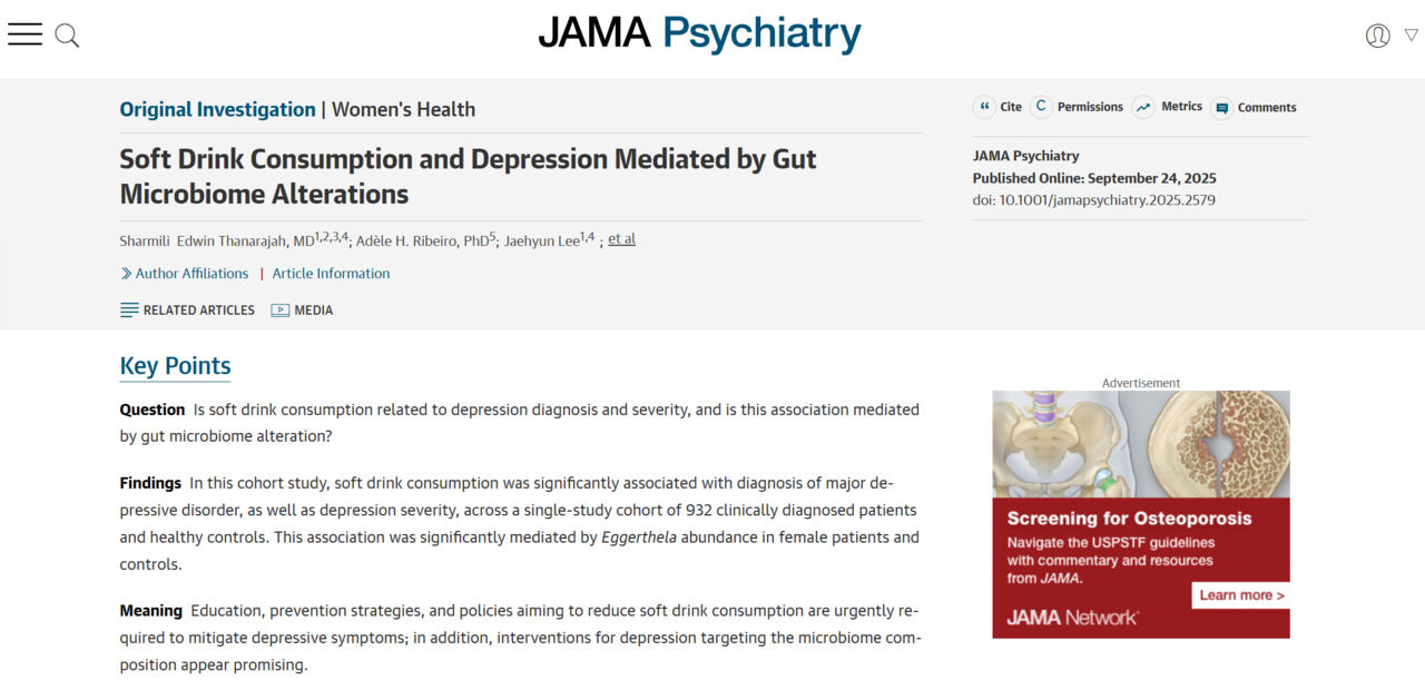 그 결과, 탄산음료를 자주 마시는 사람은 우울증 진단 가능성이 평균 8.1% 더 높았고, 특히 여성은 16.7%까지 위험도가 증가하는 것으로 드러났다.