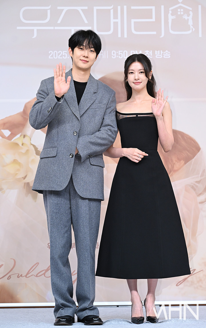 (MHN 이현지 기자) 배우 최우식, 정소민이 10일 오후 서울 양천구 SBS 목동에서 진행된 드라마 '우주메리미' 제작발표회에 참석해 포토타임을 갖고 있다.