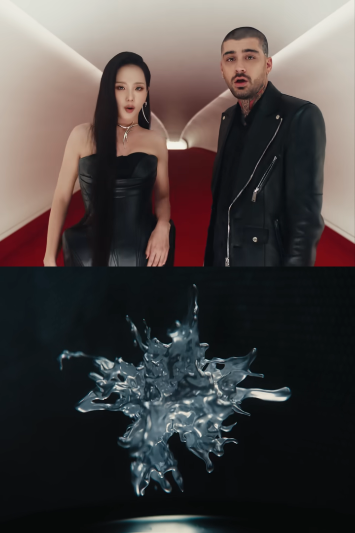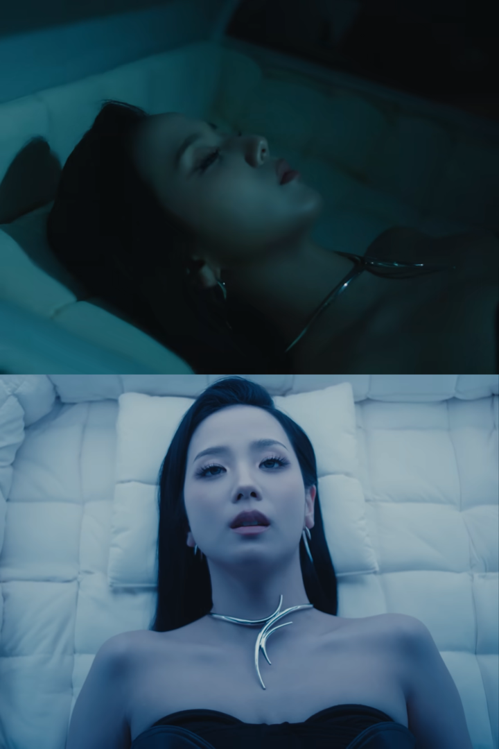 뮤직비디오는 이러한 위태로운 사랑의 이미지를 감각적으로 그려낸다. 광활한 우주 공간에 떠 있는 '캡슐' 속에서 눈을 뜨는 지수의 모습은 두 사람만의 관계 속에 스스로를 고립시키려는 의지를 상징하는 듯하다. 영상 내내 반복되는 '물'의 이미지는 두 사람이 빠져든 깊고 위험한 감정의 늪을 시각적으로 표현한다.
