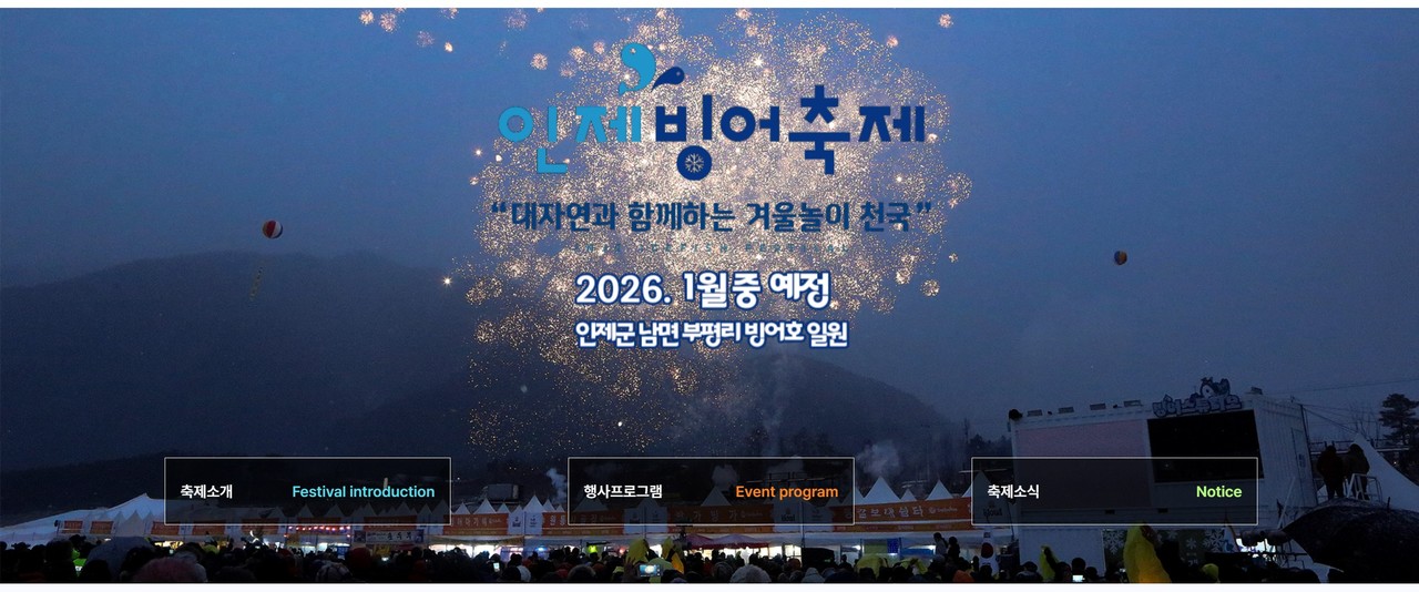 겨울축제를 이야기할 때 가장 먼저 떠오르는 대표 주자는 단연 ‘얼음나라 화천 산천어축제’이다. 오는 2026년 1월 10일부터 2월 1일까지 강원 화천군 화천천 일대에서는 ‘얼음나라 화천산천어축제’가 23일간 열린다.