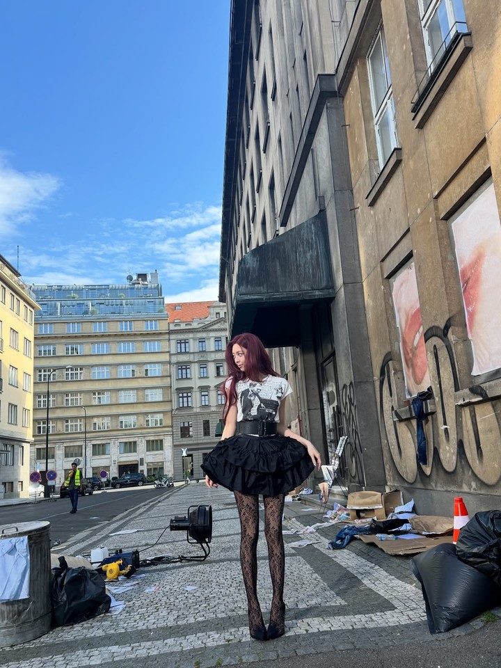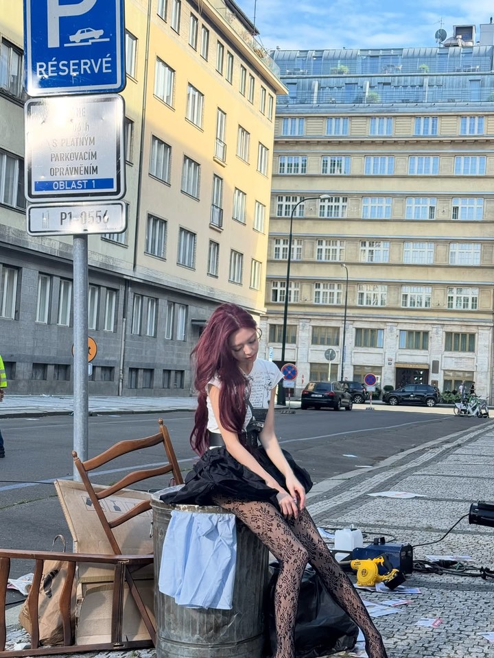 이어 공개된 야외 촬영컷에서는 레이스 패턴 스타킹과 러플 스커트를 더한 스타일링으로 독특한 실루엣을 완성했다. 로우 앵글에서도 시선을 강탈하는 몸선과 '아이돌' 존재감이 돋보였다.