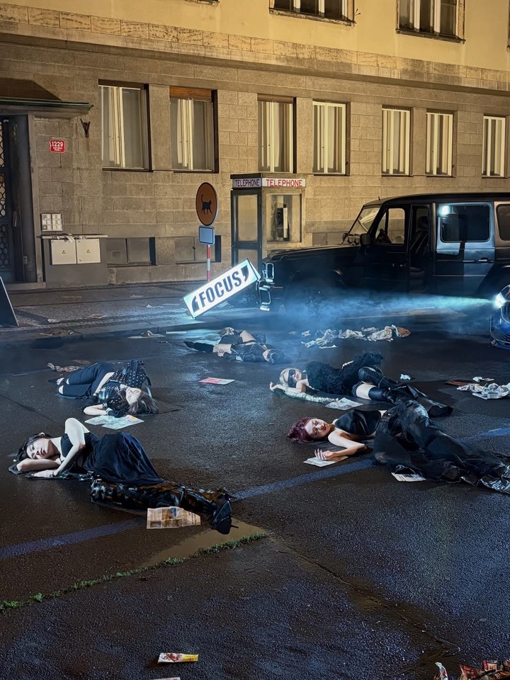 거리 곳곳에서 진행된 야간 촬영컷 역시 색다른 분위기를 자아냈다. 도로 위에 누워 연출한 장면에서는 펑키한 무드를, 도시를 배경으로 한 모습에서는 영화 스틸컷을 방불케 하는 압도적인 분위기로 강렬한 인상을 남겼다.
