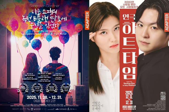먼저 연극 '나는 쇼팽의 녹턴 B플랫 단조에 순결을 잃었다?'는 한-영 공동제작으로 주목받은 작품으로, 장기연애 커플의 감정과 갈등을 깊이 있게 그린 연극이다. '하트타임'은 2025 에딘버러 프린지 신작으로 아시아 초연으로 선보인다. 어긋나는 인연과 타이밍을 섬세하게 다룬 로맨틱 코미디로 기대를 모은다.