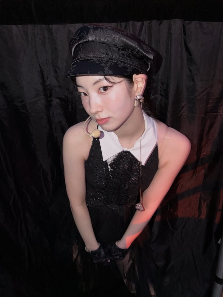 지난 24일 다현은 자신의 SNS에 여러 장의 사진을 게재하며 공연 비하인드 컷을 공개했다. 공개된 사진 속 다현은 화이트 카라가 포인트인 블랙 홀터넥 드레스를 입고 세련된 무드를 완성했다.