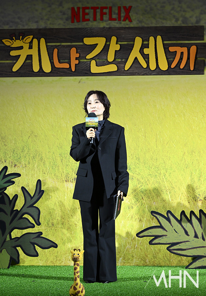 (MHN 이현지 기자) 박경림이 25일 오전 서울 서울 용산구 CGV용산아이파크몰에서 진행된 넷플릭스 '케냐 간 세끼' 제작발표회에 참석해 진행을 하고 있다.