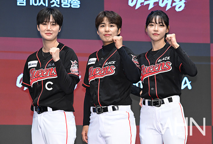 (MHN 이현지 기자) 김온아, 김성연, 김민지가 25일 오후 서울 구로구 더 세인트에서 진행된 채널A 새 예능 '야구여왕 제작발표회에 참석해 포토타임을 갖고 있다.