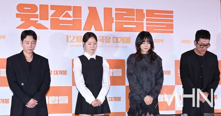 (MHN 이지숙 기자) 배우 김동욱, 공효진, 이하늬, 하정우가 25일 오후 서울 강남구 메가박스 코엑스에서 열린 영화 ‘윗집 사람들’ 언론 시사회에 참석했다.