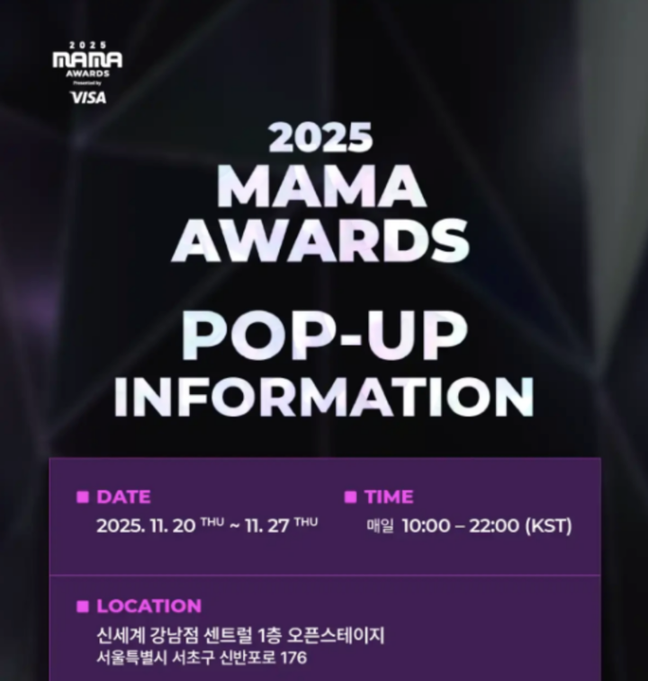 팝업은 사전 예약 접수 6분 만에 3일치 예약이 마감될 정도로 폭발적인 관심을 입증했으며, 현재는 현장 접수를 통해서도 입장이 가능하다. 전시장은 올해 마마 어워즈의 슬로건 ‘어-흥(UH-HEUNG)’을 테마로 디자인되었으며, LED 기둥을 활용한 무대 연출과 다양한 포토존이 마련되어 방문객들은 실제 시상식에 온 듯한 경험을 할 수 있다.