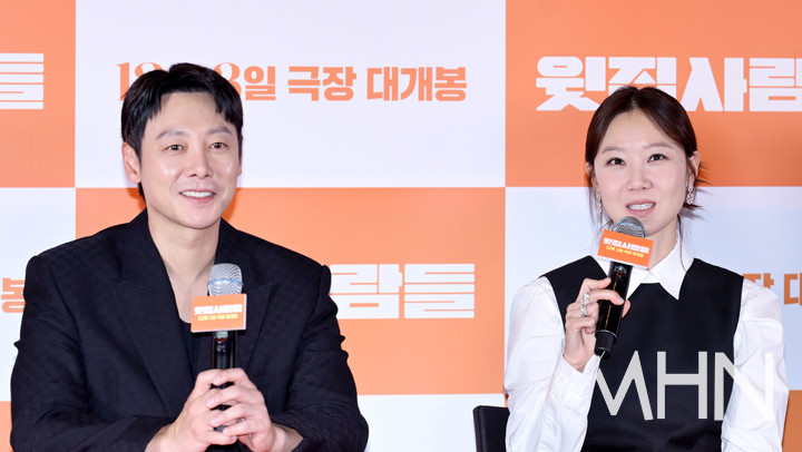 (MHN 이지숙 기자) 배우 김동욱, 공효진이 25일 오후 서울 강남구 메가박스 코엑스에서 열린 영화 ‘윗집 사람들’ 언론 시사회에 참석해 영화에 대한 이야기를 나누고 있다.