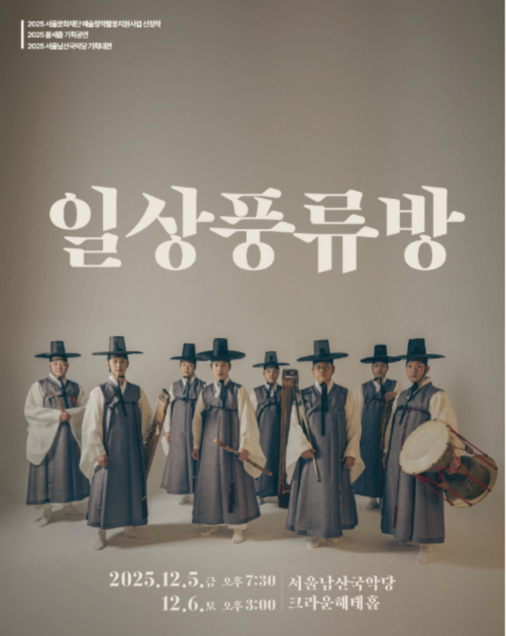 오는 12월 5일부터 6일까지 서울 남산극당에서 공연 '일상풍류방'을 선보인다. 2025 서울문화재단 예술창작활동지원사업에 선정된 이번 공연은, 불세출이 2006년 결성된 이래 축적해 온 음악적 세계관을 바탕으로 '일상의 의미'로서의 새로운 풍류의 장을 펼칠 예정이다.