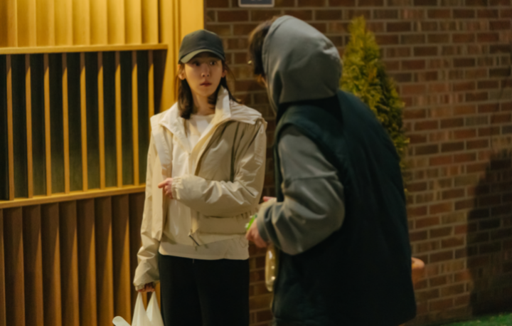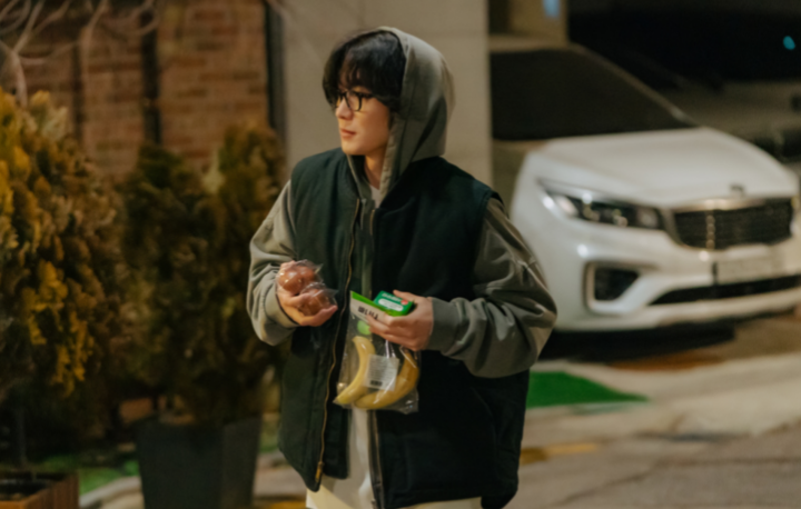 새벽 골목에서 느닷없이 뒤를 따라오는 낯선 남자에 순간 긴장하는 준경의 표정은 마치 스릴러의 한 장면처럼 팽팽하다. 그런데 알고 보니 후드 차림에 우유와 바나나를 손에 든 누가 봐도 동네 주민 도현이다. 위협적인 구석은 없지만 어딘가 엉뚱한, 그래서 더 ‘이 남자 뭐지?’ 싶은 인상을 남긴다.