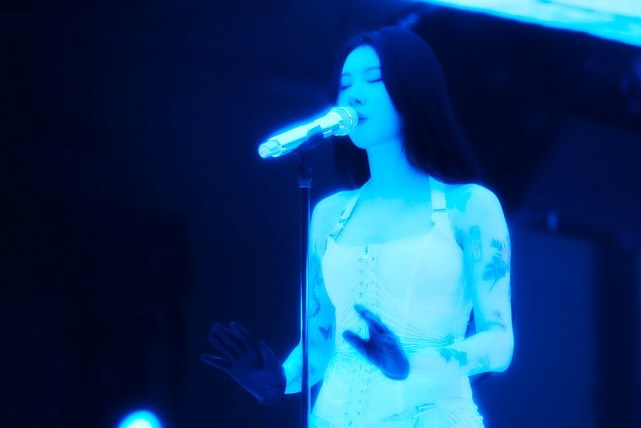 무대를 푸른 조명으로 가득 채운 컷에서는 눈을 감은 채 마이크를 잡고 노래에 몰입하는 모습이 담겨, 몽환적인 분위기를 한층 극대화한다.