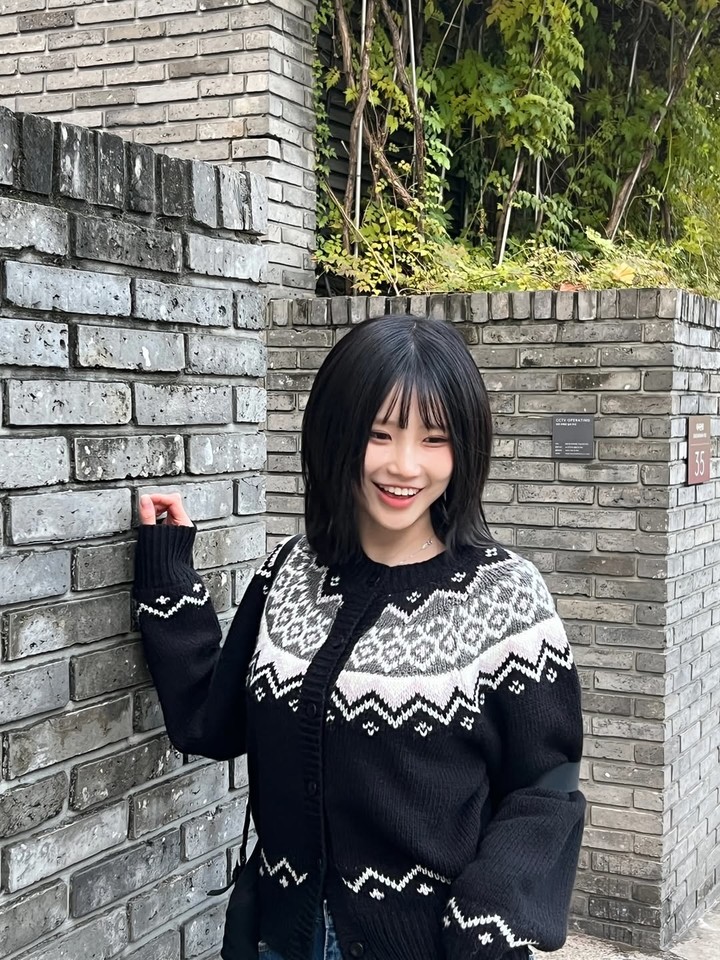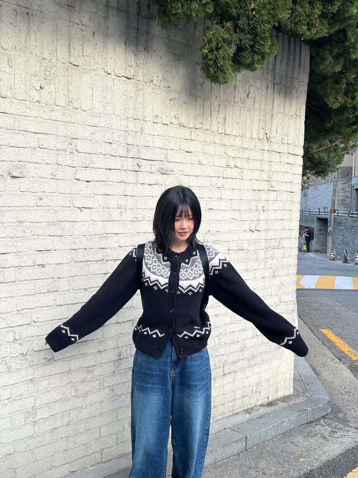 공개된 사진 속 송하영은 짧은 단발 헤어에 블랙·아이보리 패턴이 들어간 니트 카디건과 와이드 데님 팬츠를 매치해 ‘가을 여친룩'을 선보였다.