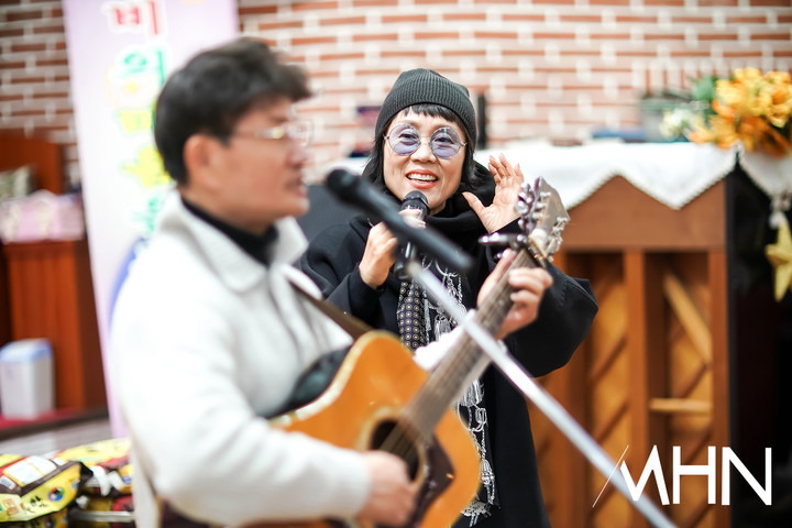 가수 강은철, 남궁옥분이 재능 기부 공연을 펼치고 있다.
