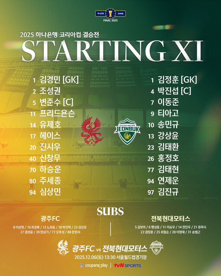 전북은 6일 서울월드컵경기장에서 열린 2025 하나은행 코리아컵 결승전에서 이동준의 선제 결승골과 이승우의 연장 전반 터진 결승골에 힘입어 광주FC를 2-1로 눌렀다.