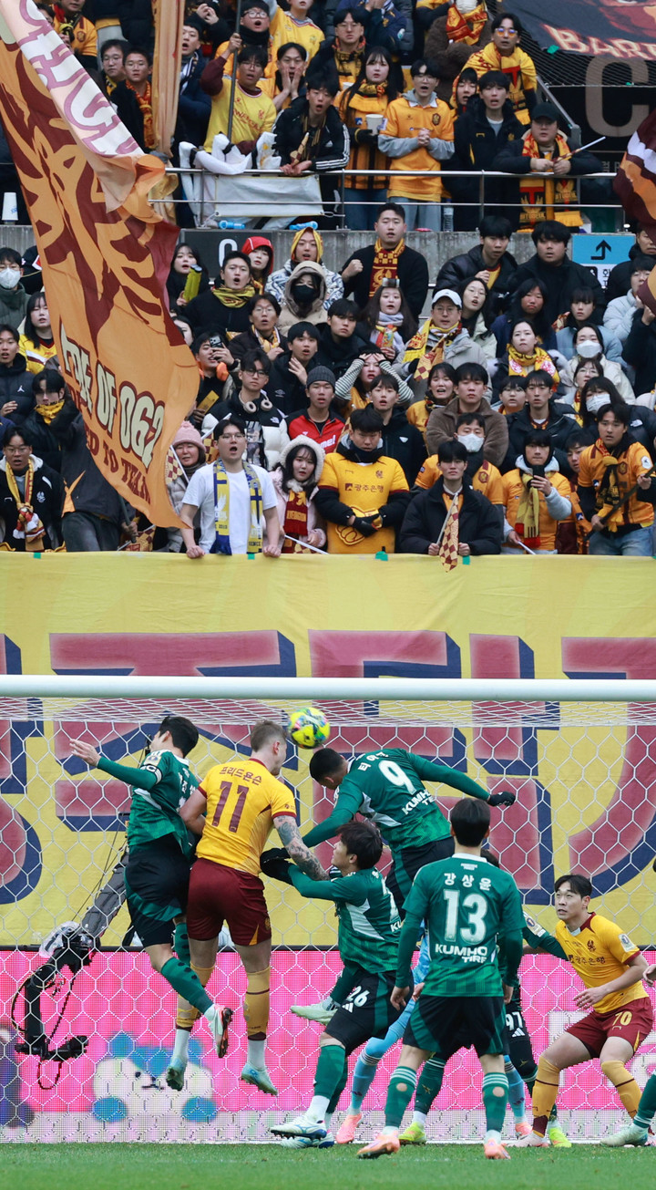추가 실점 위기를 넘긴 광주는 반격에 나섰고, 후반 24분 오른쪽 측면에서 신창무의 크로스를 페널티박스 왼편에서 헤이스가 머리로 떨궈준 공을 프리드욘슨이 헤더로 골망을 흔들면서 1-1 균형을 맞췄다.